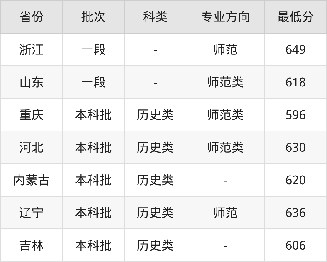 东北师范大学汉语言文学专业录取分数线2025各省汇总显示,省内招生最低分为606分,省外招生最低分为山东618分、重庆596分、河北630分、内蒙古620分等。更多专业分数详情、选科要求、专业简介等均可在正文查阅。