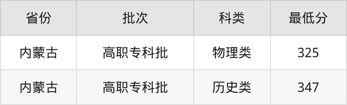 内蒙古自治区(高职专科批)