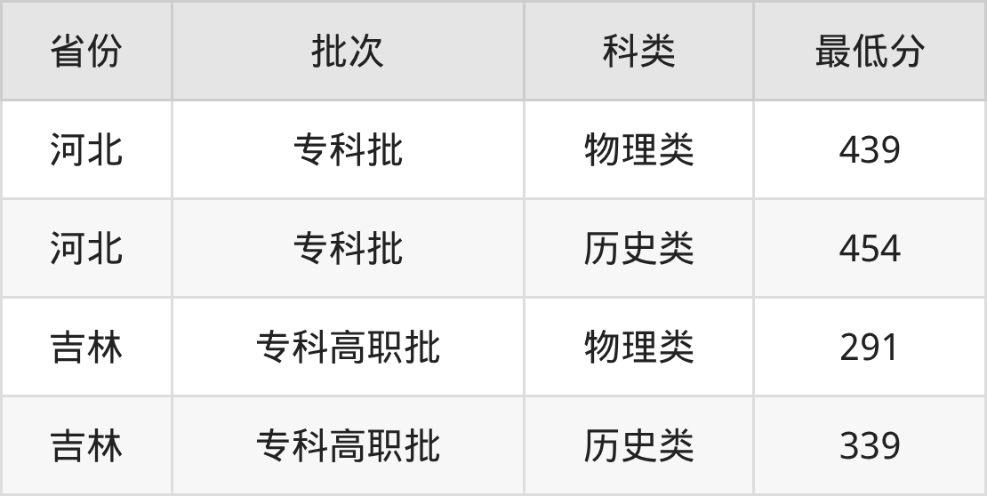 2025年吉林工程职业学院宠物医疗技术专业在省外招生分数线各不相同,具体如下: