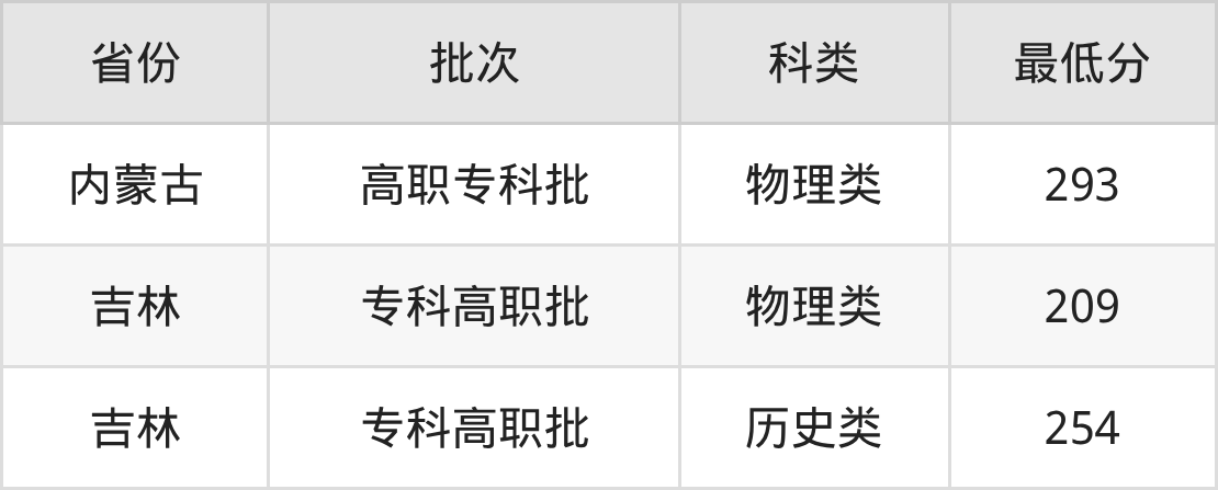 | 批次 | 科类 | 最低分 | 位次 |