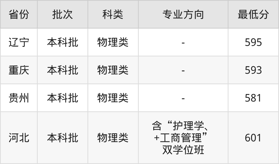 物理类601分(含“护理学、+工商管理”双学位班、位次26287名);