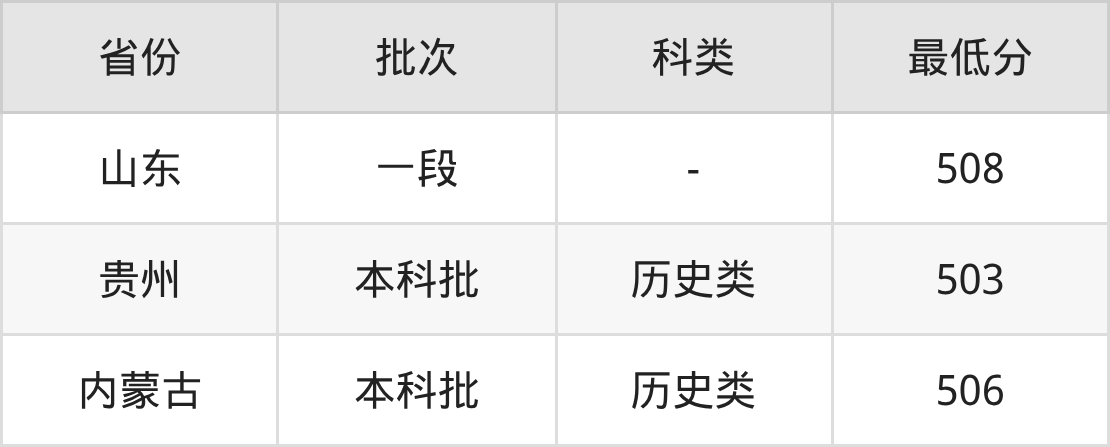 | 批次 | 最低分 | 位次 |