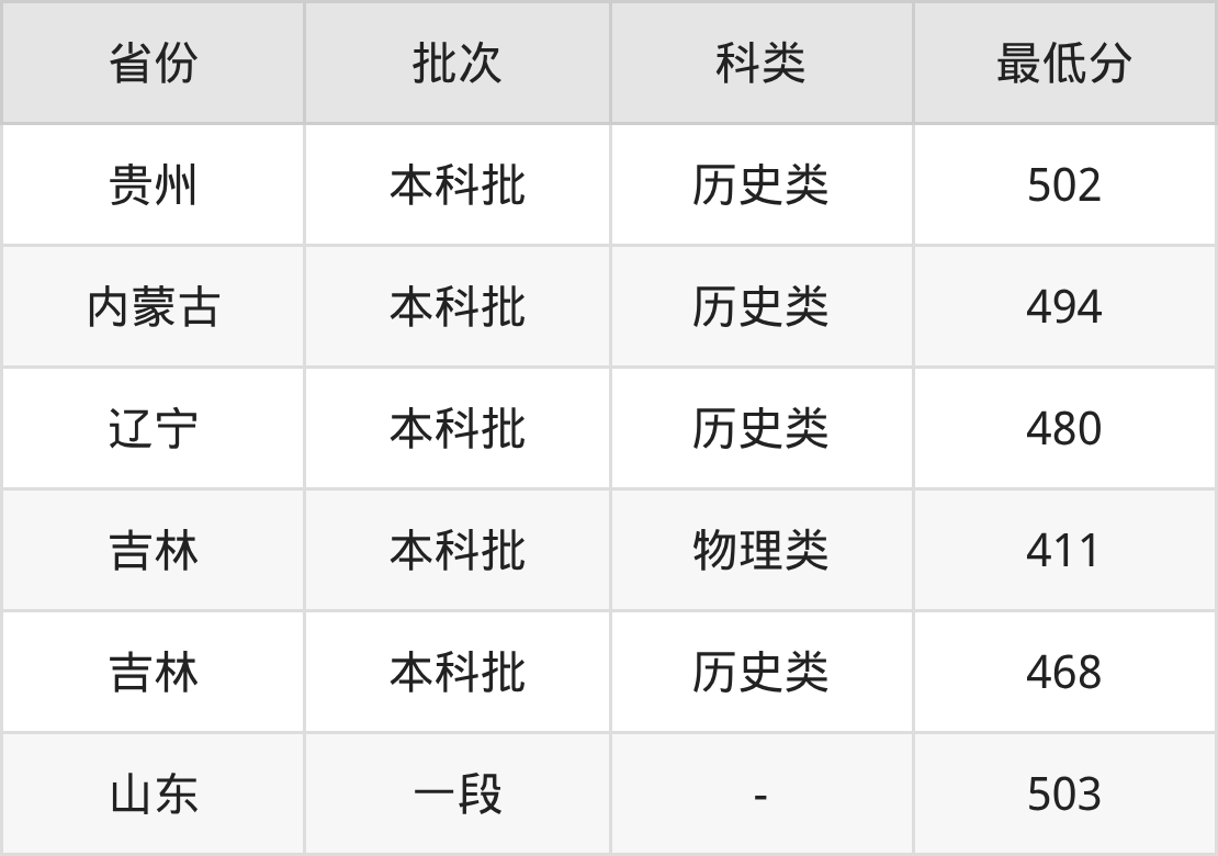 | 批次 | 科类 | 最低分 | 位次 |