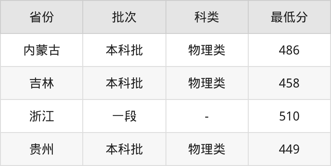 | 批次 | 科类 | 最低分 | 位次 |