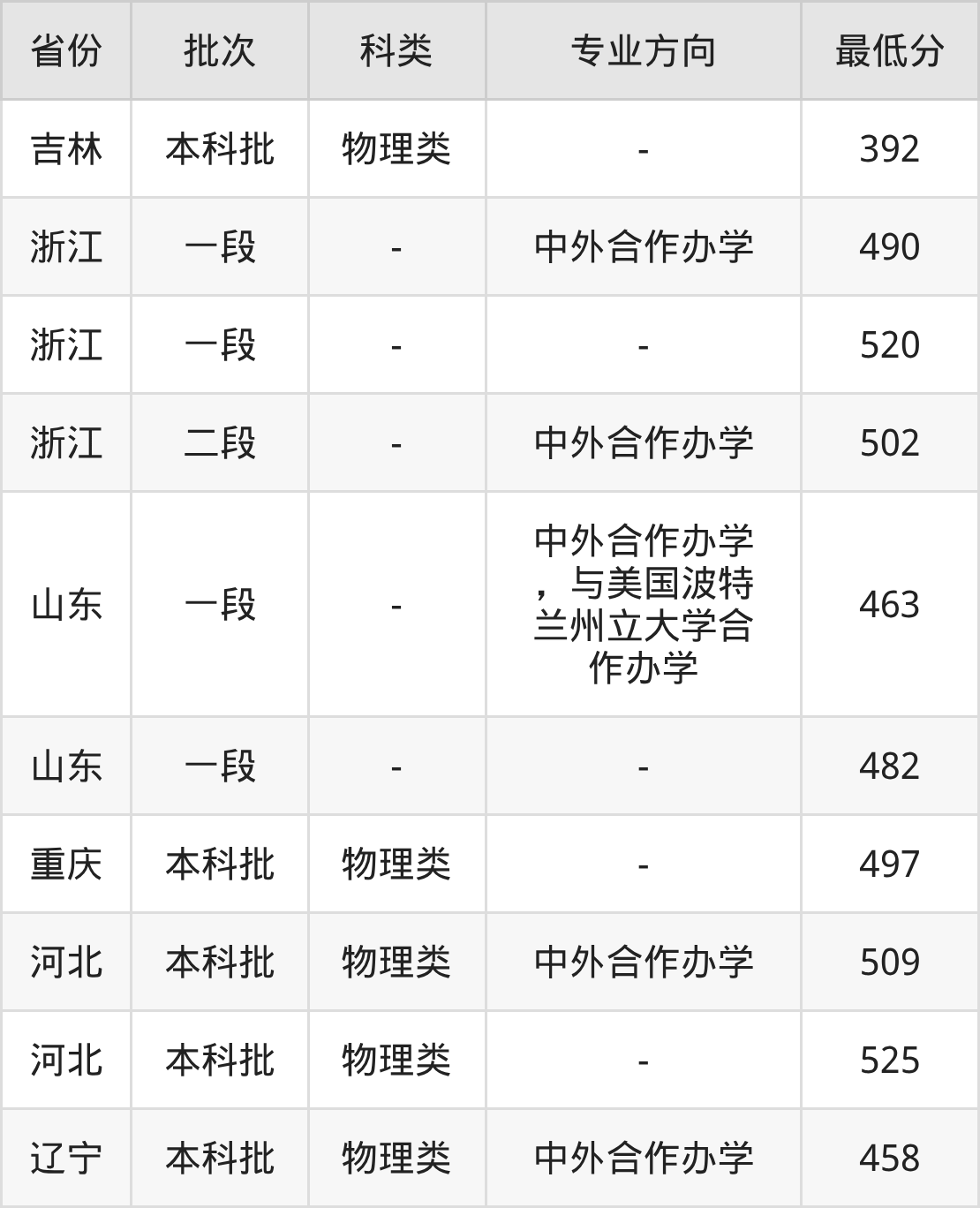 463分(中外合作办学,与美国波特兰州立大学合作办学、位次277818名),482分(位次230162名);