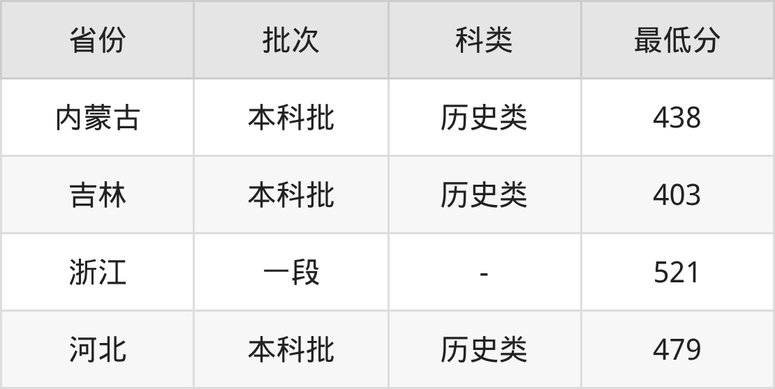 | 批次 | 科类 | 最低分 | 位次 |
