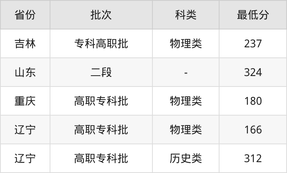 大连汽车职业技术学院影视动画专业录取分数线2025各省汇总显示,省内招生最低分为166分,省外招生最低分为吉林237分、山东324分、重庆180分。更多专业分数详情、选科要求、专业简介等均可在正文查阅。