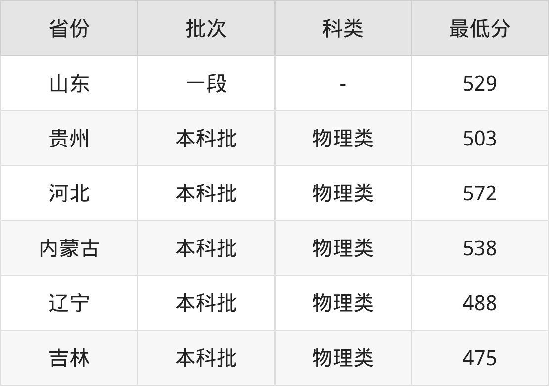 | 批次 | 科类 | 最低分 | 位次 |