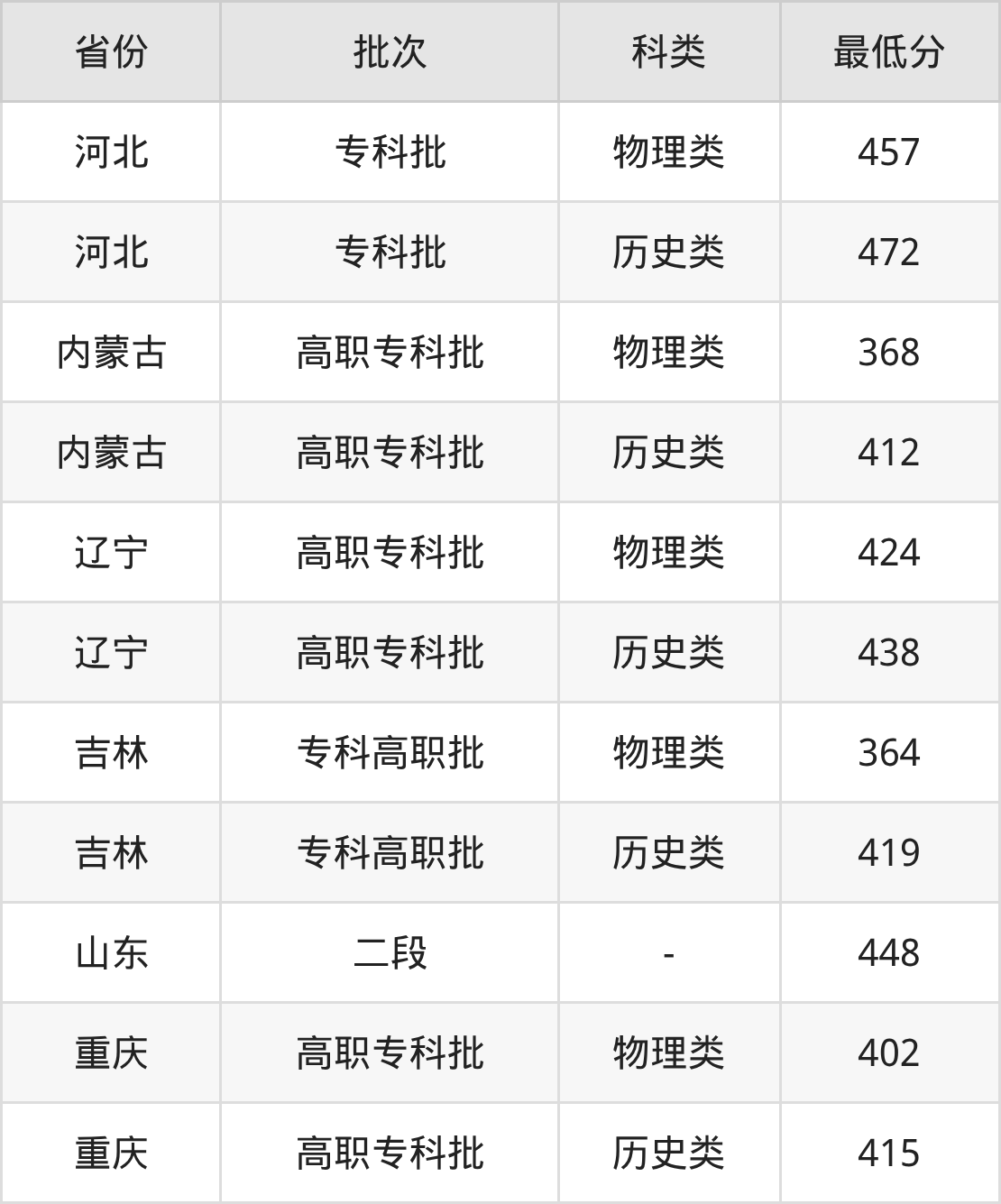 2、吉林省(专科高职批)