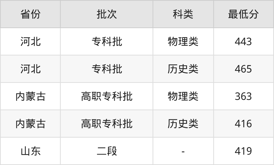 兰州资源环境职业技术大学工业机器人技术专业录取分数线2025各省汇总显示,省外招生最低分为河北443分、内蒙古363分、山东419分。更多专业分数详情、选科要求、专业简介等均可在正文查阅。