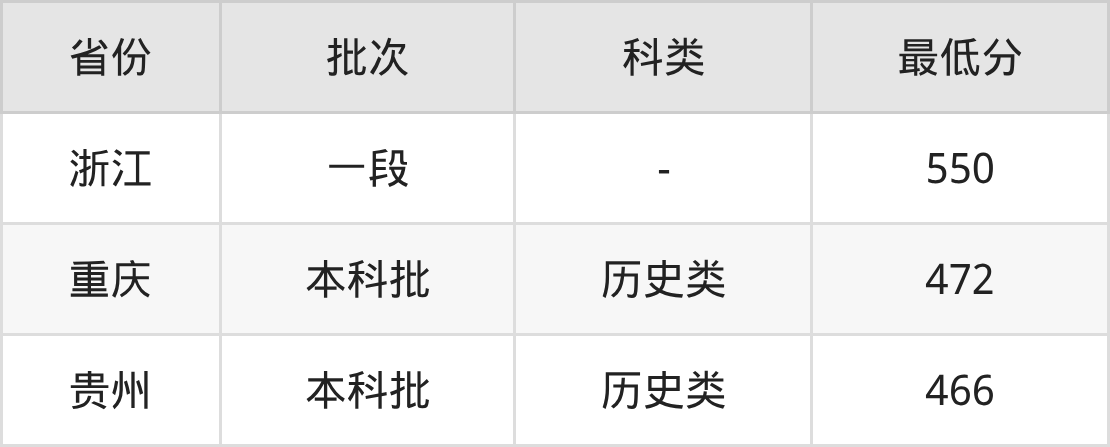南通大学杏林学院行政管理专业录取分数线2025各省汇总显示,省外招生最低分为重庆472分、贵州466分、浙江550分。更多专业分数详情、选科要求、专业简介等均可在正文查阅。