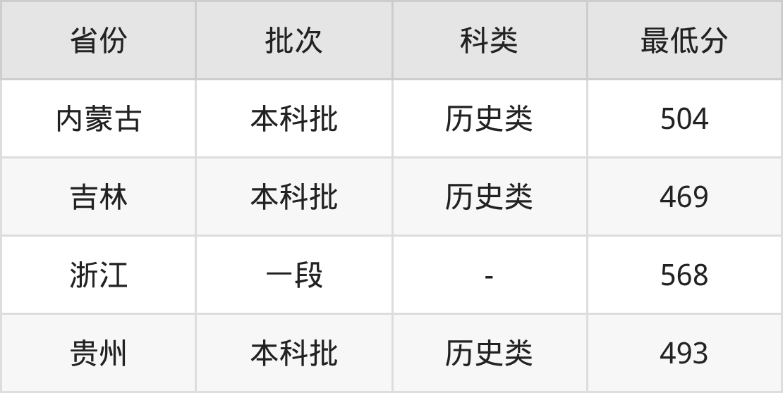 扬州大学广陵学院汉语言文学专业录取分数线2025各省汇总显示,省外招生最低分为内蒙古504分、吉林469分、浙江568分、贵州493分。更多专业分数详情、选科要求、专业简介等均可在正文查阅。