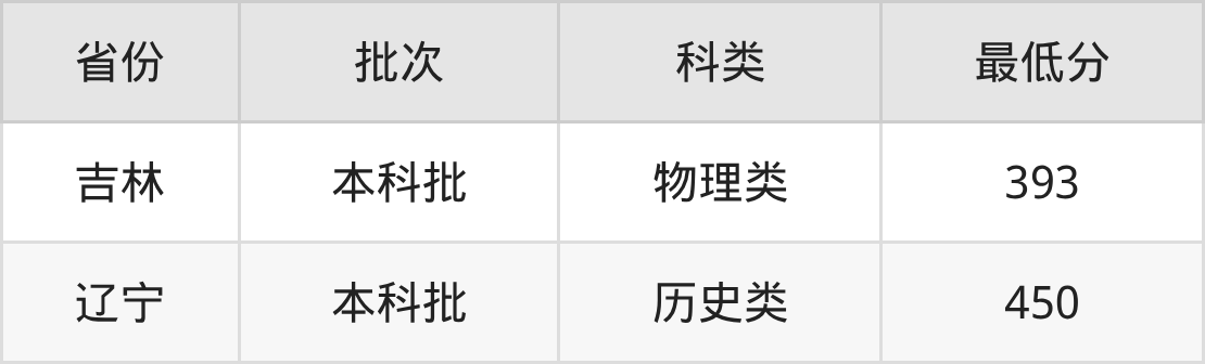 | 批次 | 科类 | 最低分 | 位次 |