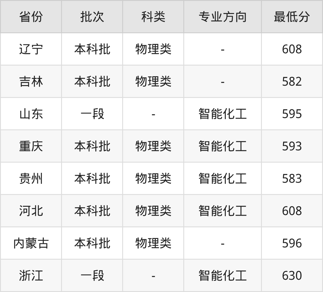 中国石油大学(华东)化工与制药类专业录取分数线2025各省汇总显示,省内招生最低分为595分,省外招生最低分为贵州583分、河北608分、内蒙古596分、辽宁608分等。更多专业分数详情、选科要求、专业简介等均可在正文查阅。