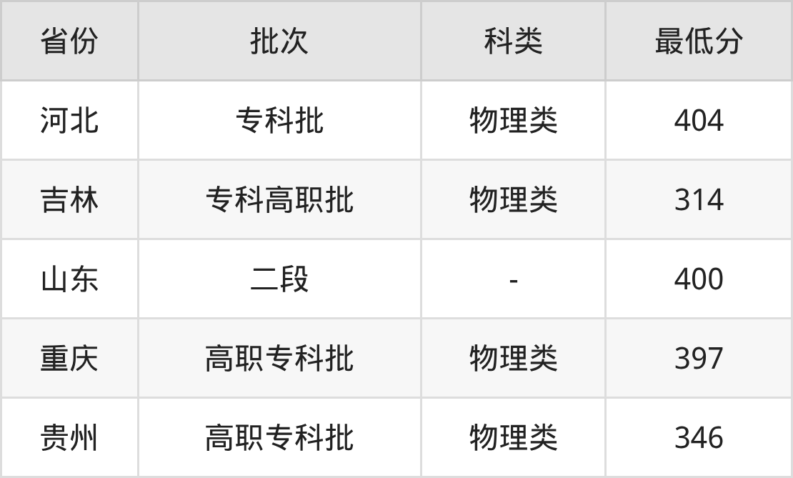 2、吉林省(专科高职批)