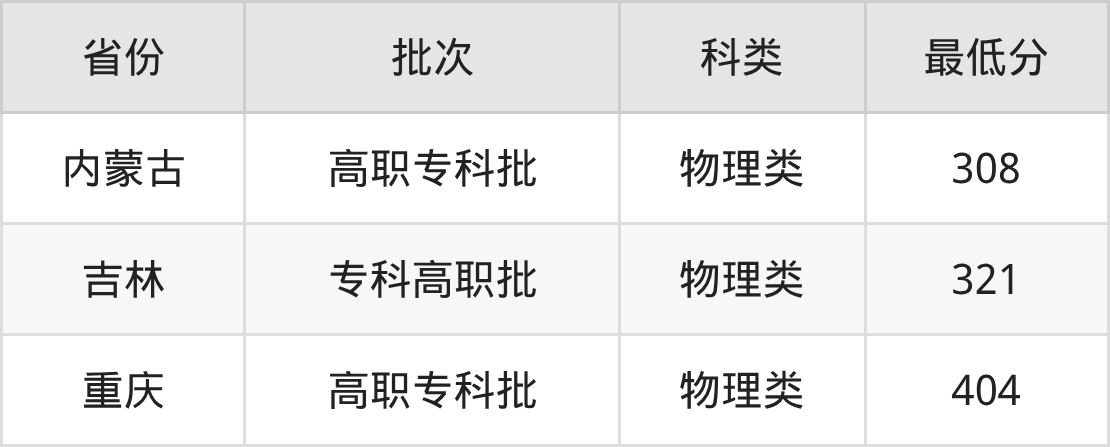 3、内蒙古自治区(高职专科批)