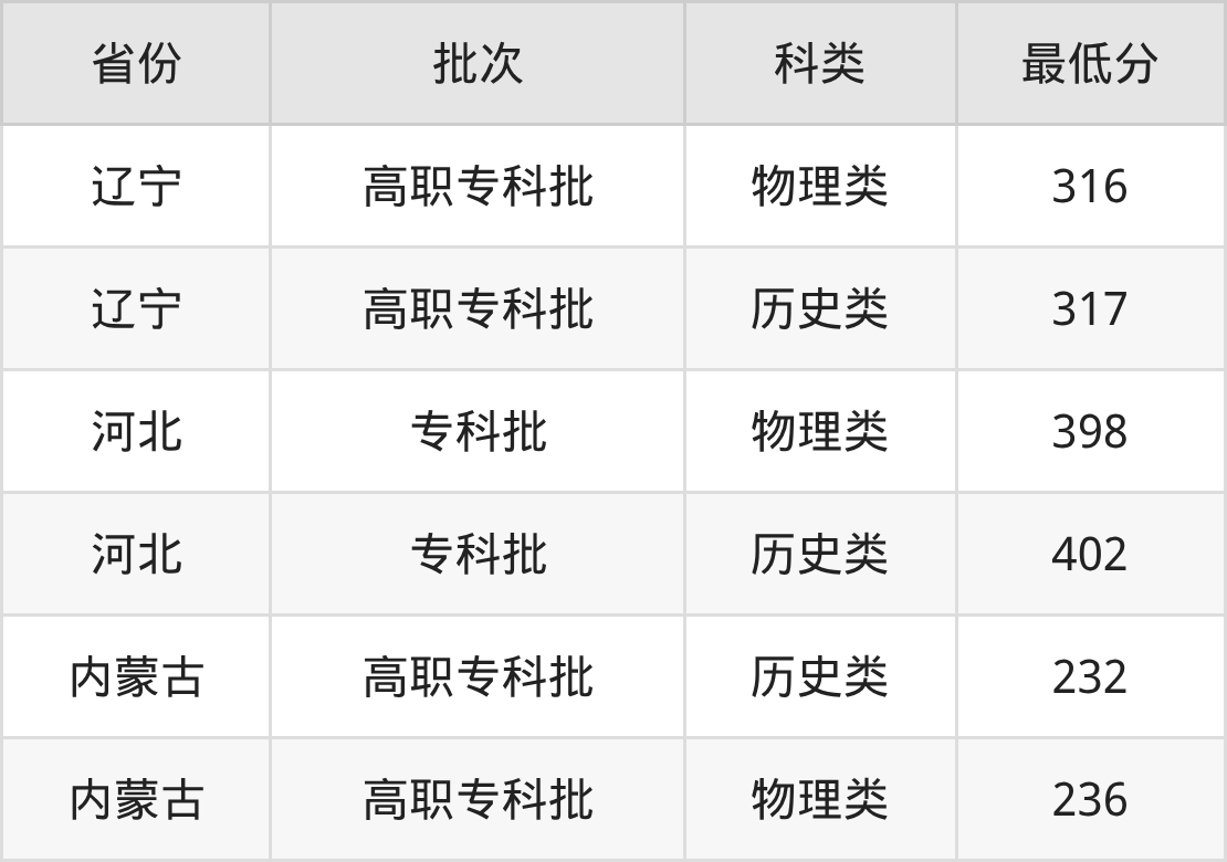 | 批次 | 科类 | 最低分 | 位次 |
