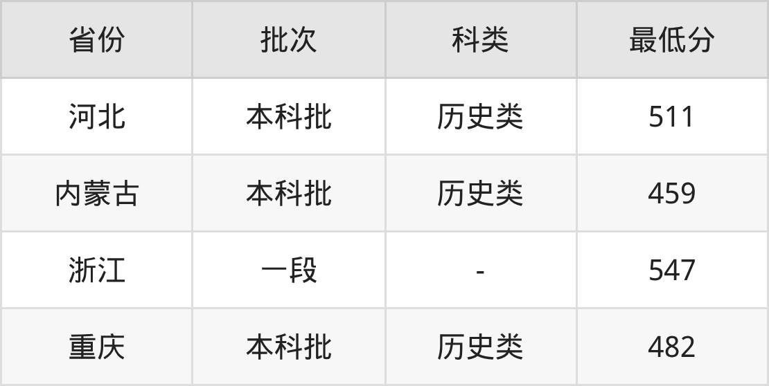 | 批次 | 科类 | 最低分 | 位次 |