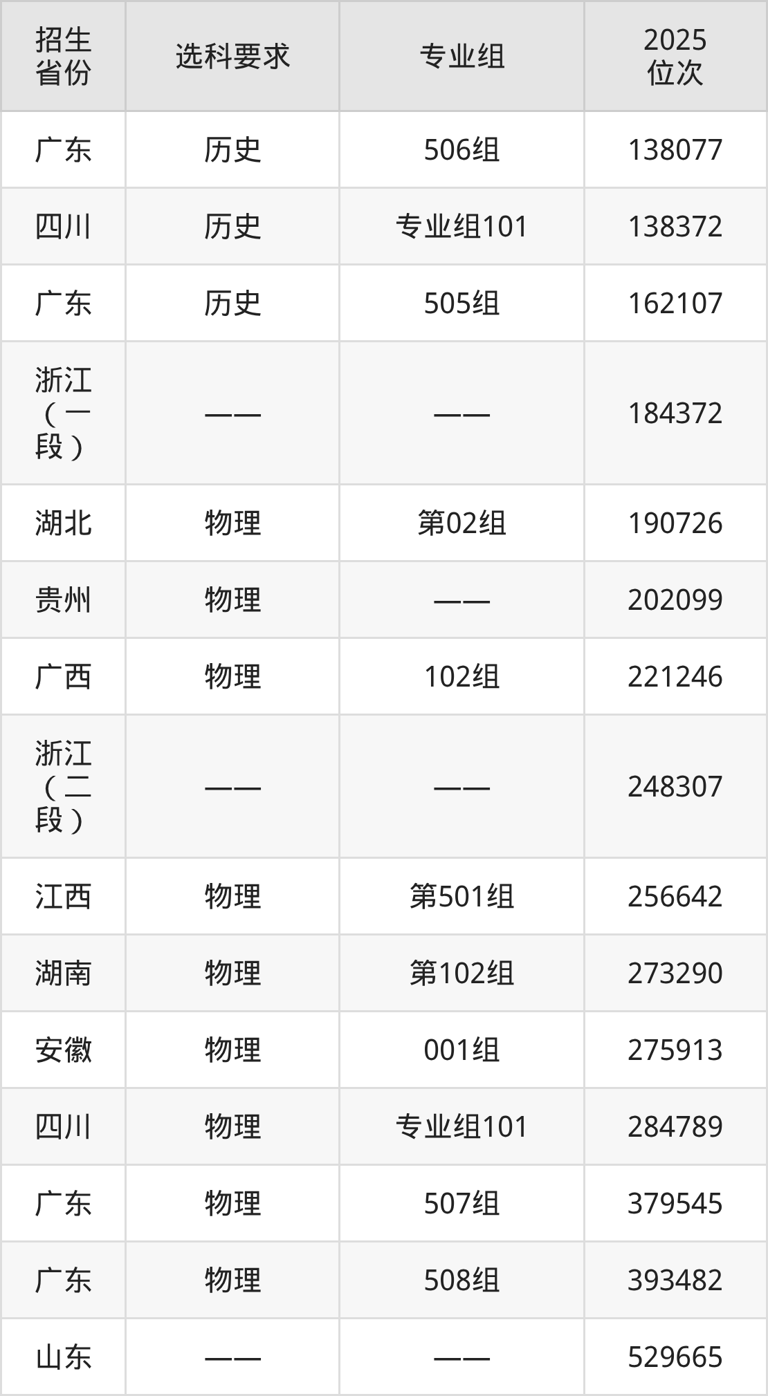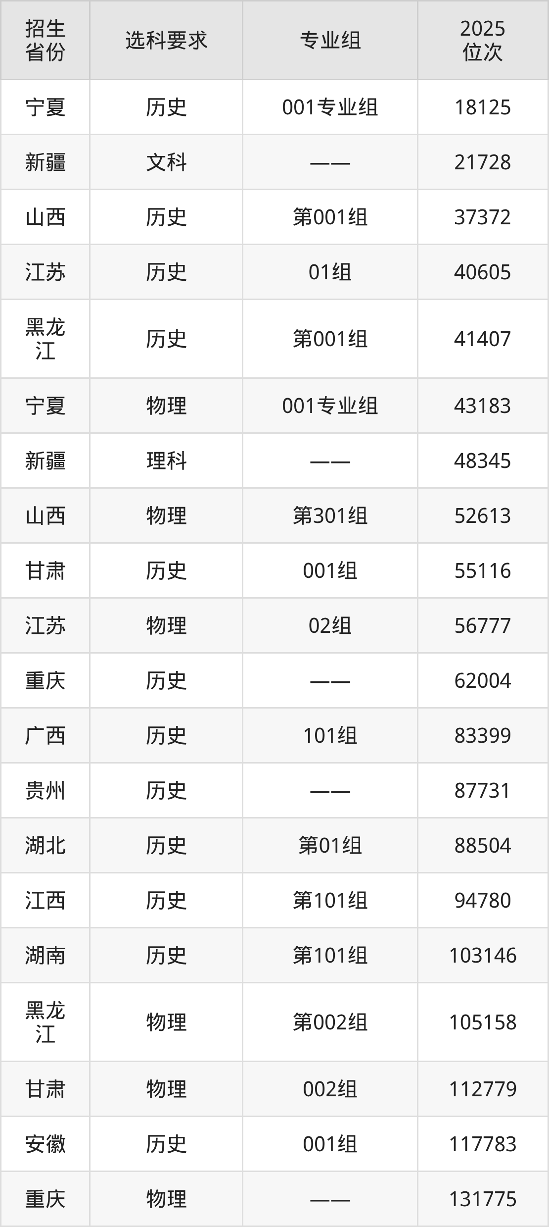 随州职业技术学院2025年在全国各省的位次差异较大,最高位次是18125位(宁夏历史类)、最低位次是529665位(山东)。各省具体位次请看下图: