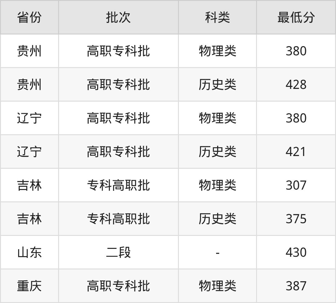4、吉林省(专科高职批)