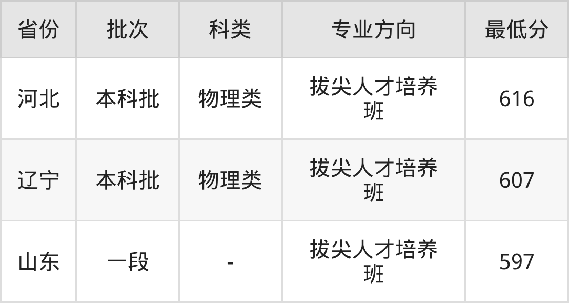 物理类607分(拔尖人才培养班、位次11450名);
