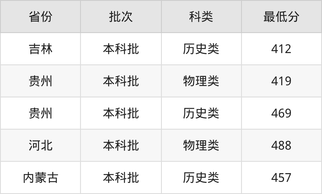 广州新华学院会计学专业录取分数线2025各省汇总显示,省外招生最低分为内蒙古457分、吉林412分、贵州419分、河北488分。更多专业分数详情、选科要求、专业简介等均可在正文查阅。
