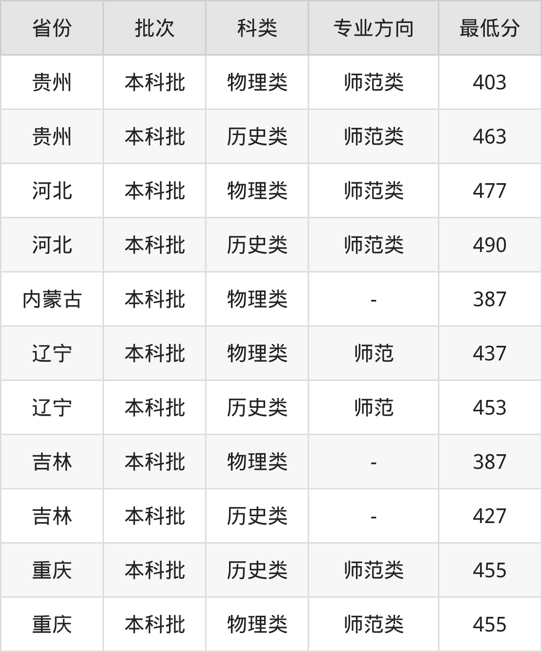 | 历史+不限 | 辽宁、吉林、黑龙江、 安徽、江西、陕西、广 西、重庆、广东、河北 、甘肃、河南、湖北、 四川、贵州 |