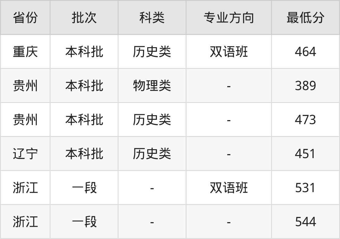 上海建桥学院新闻学专业录取分数线2025各省汇总显示,市外招生最低分为浙江531分、重庆464分、贵州389分、辽宁451分。更多专业分数详情、选科要求、专业简介等均可在正文查阅。
