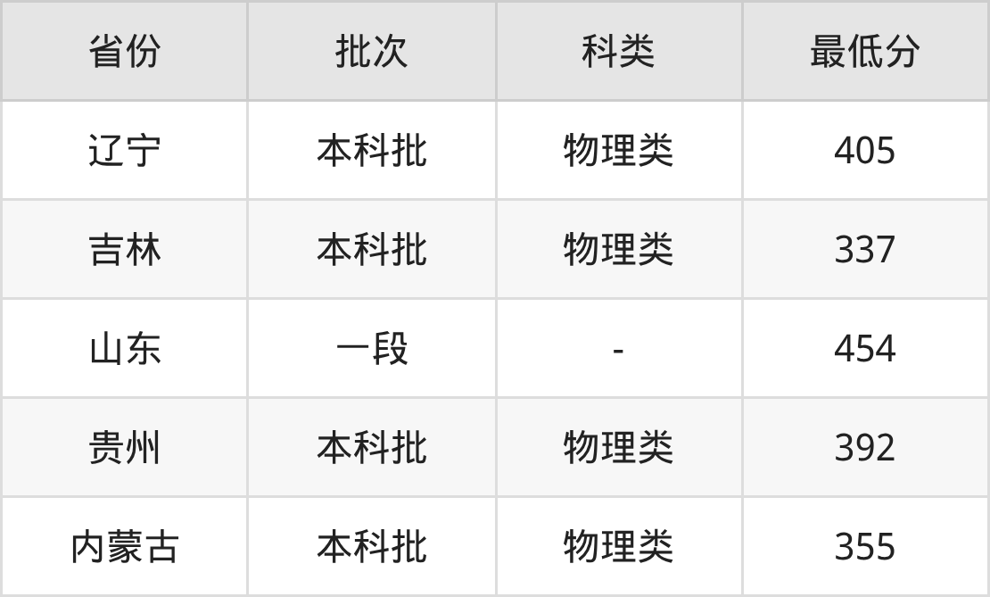 长春建筑学院工程管理专业录取分数线2025各省汇总显示,省内招生最低分为337分,省外招生最低分为山东454分、贵州392分、内蒙古355分、辽宁405分。更多专业分数详情、选科要求、专业简介等均可在正文查阅。