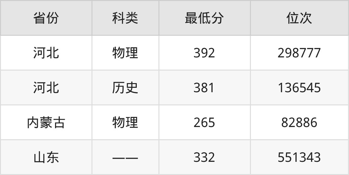 2025年阿拉善职业技术学院电气自动化技术专业在河北录取最低分:物理组是392分,对应位次排名是298777名;历史组是381分,对应位次排名是136545名。