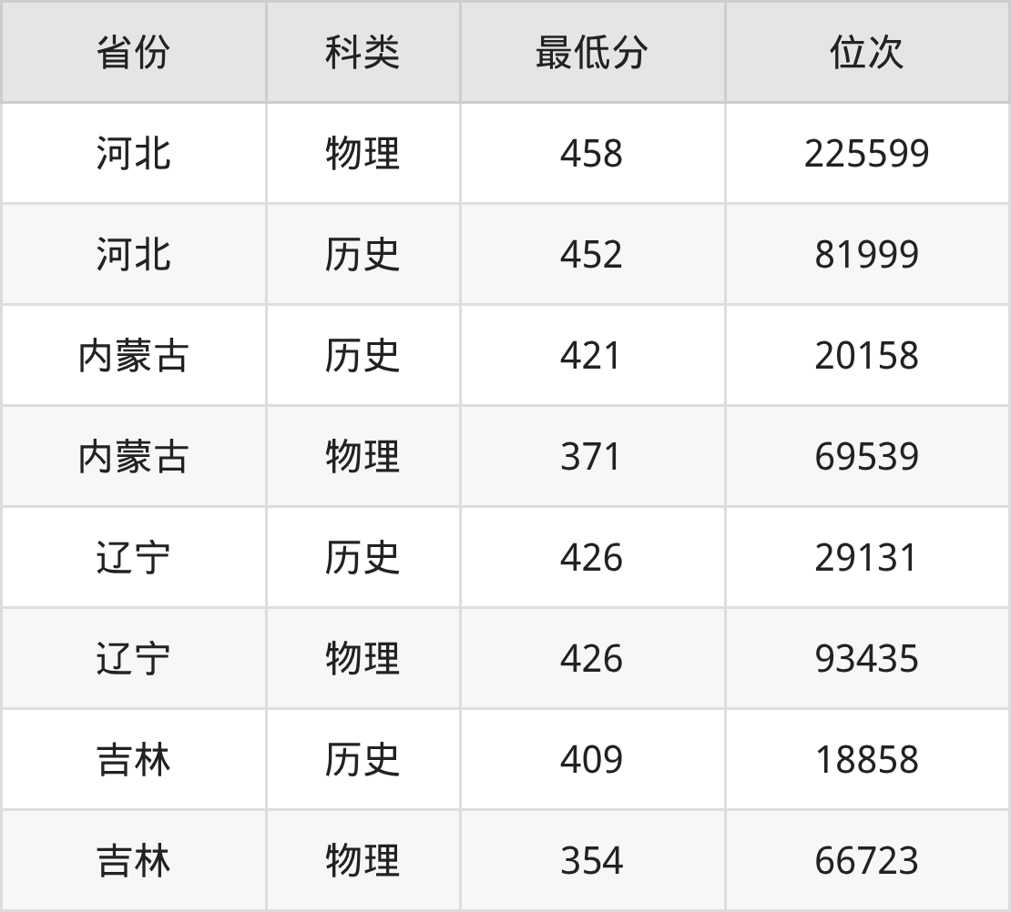 2025年辽宁医药职业学院药物制剂技术专业在河北录取最低分:物理组是458分,对应位次排名是225599名;历史组是452分,对应位次排名是81999名。