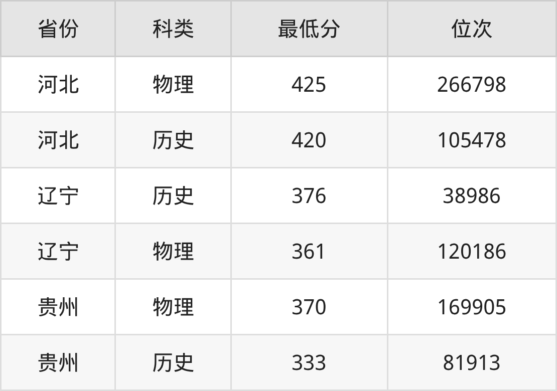 2025年河北对外经贸职业学院国际经济与贸易专业在贵州录取最低分:物理组是370分,对应位次排名是169905名;历史组是333分,对应位次排名是81913名。