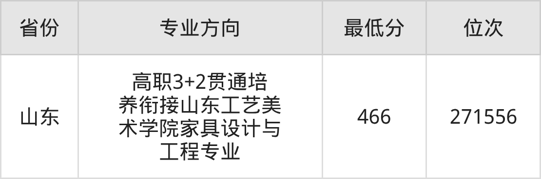 2025年山东轻工职业学院环境艺术设计专业在山东录取最低分:466分,对应位次排名是271556名。