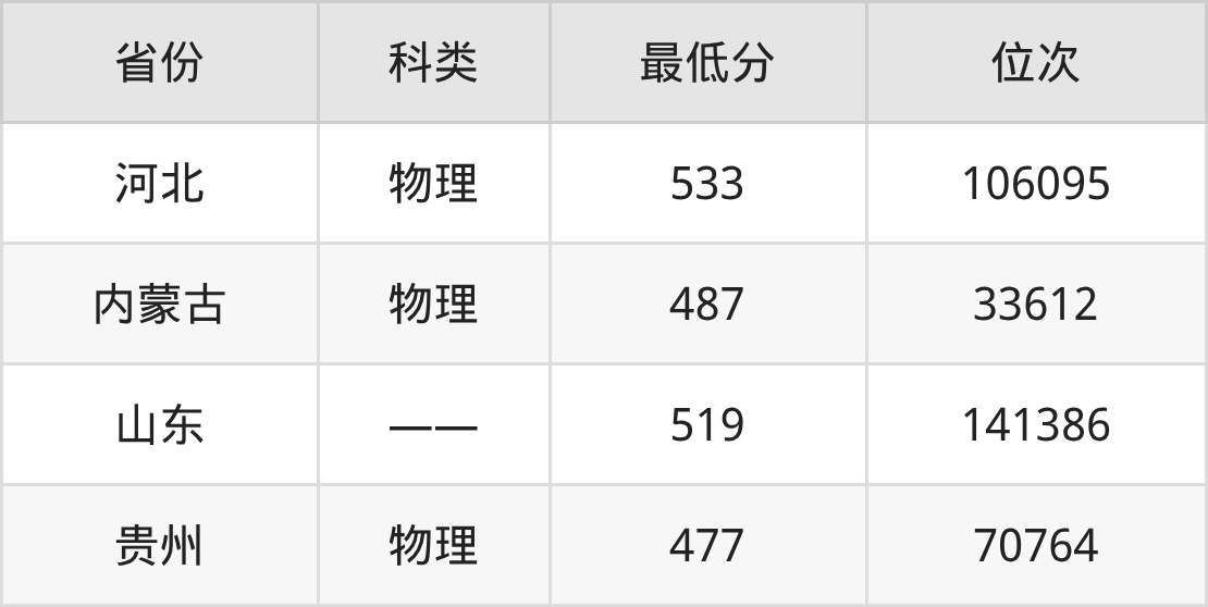 2025年防灾科技学院地质学专业在贵州录取最低分:477分,对应位次排名是70764名。