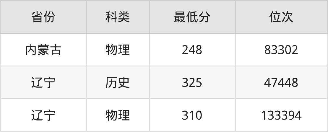 | 省份 | 首选 科目 | 招生名额 |