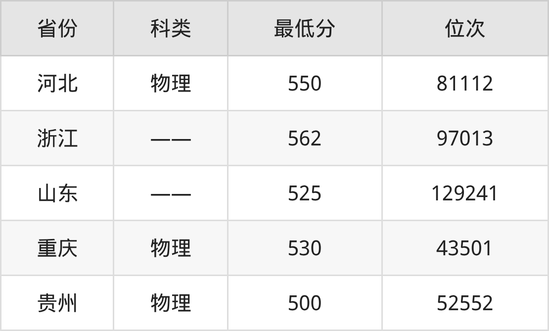 | 省份 | 首选 科目 | 招生名额 |