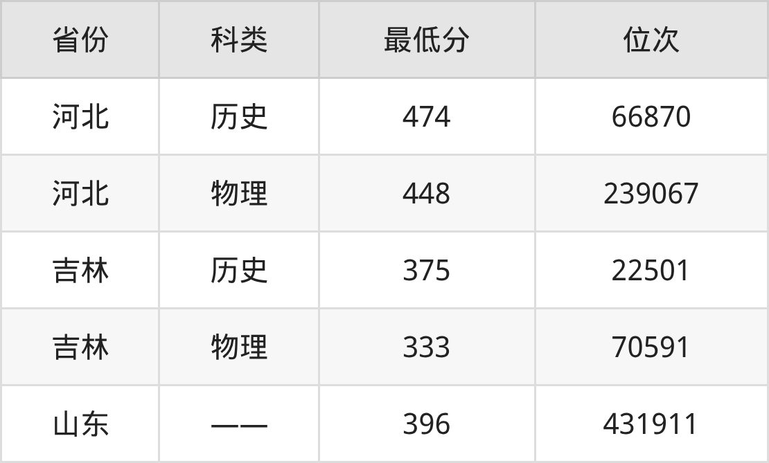 2025年山东轻工职业学院大数据与会计专业在河北录取最低分:历史组是474分,对应位次排名是66870名;物理组是448分,对应位次排名是239067名。