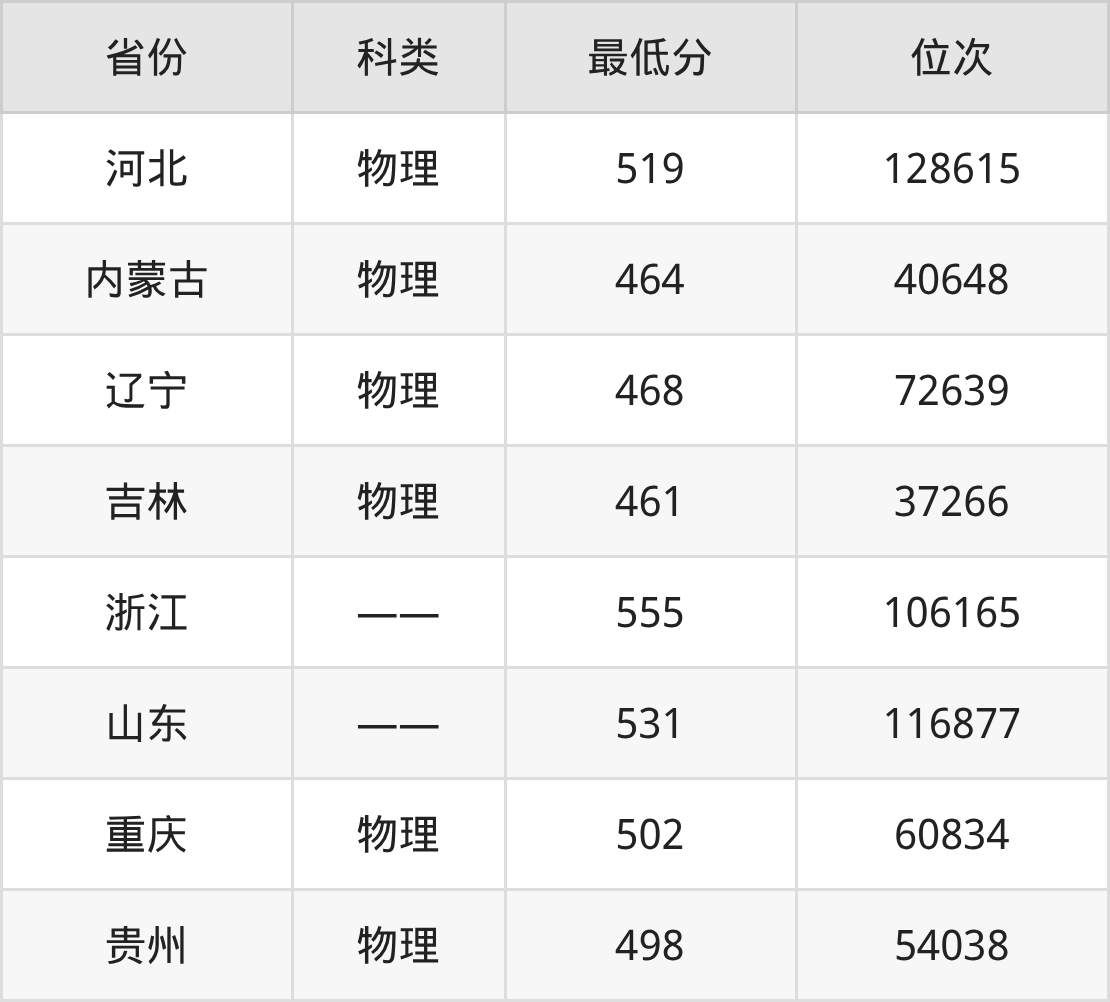 | 省份 | 首选 科目 | 招生名额 |