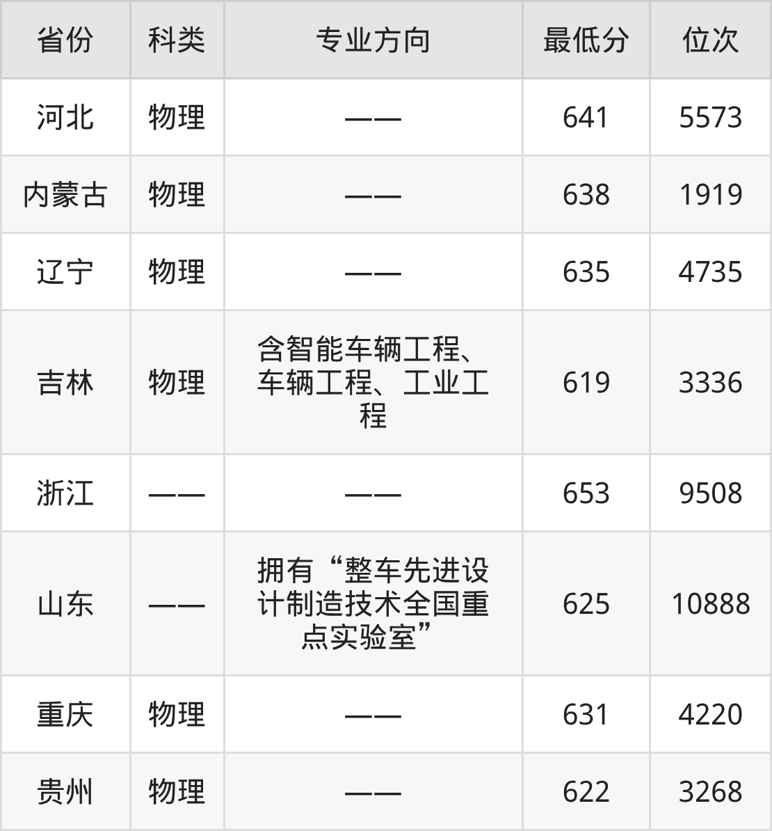 2025年湖南大学智能车辆工程专业在吉林录取最低分:619分,对应位次排名是3336名。