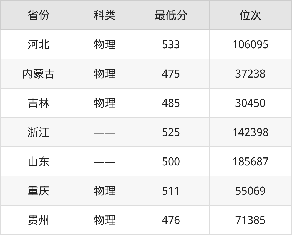 2025年防灾科技学院测绘工程专业在贵州录取最低分:476分,对应位次排名是71385名。