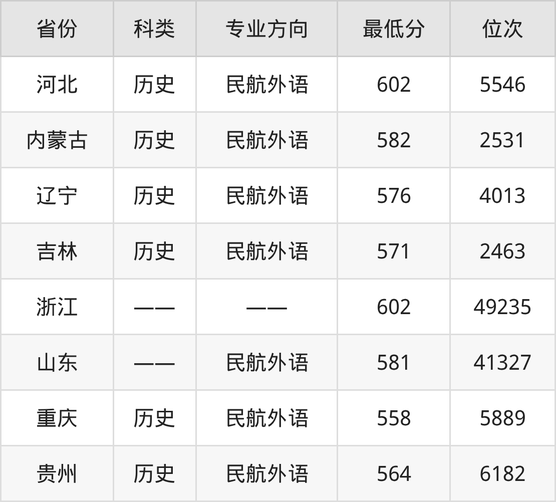 下面是2025年中国民航大学英语专业录取分数线一览表: