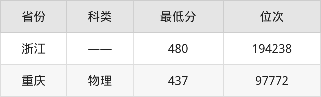1、浙江:480分