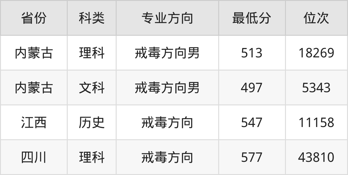 2024年中央司法警官学院禁毒学专业在内蒙古录取最低分:理科是513分,对应位次排名是18269名;文科是497分,对应位次排名是5343名。