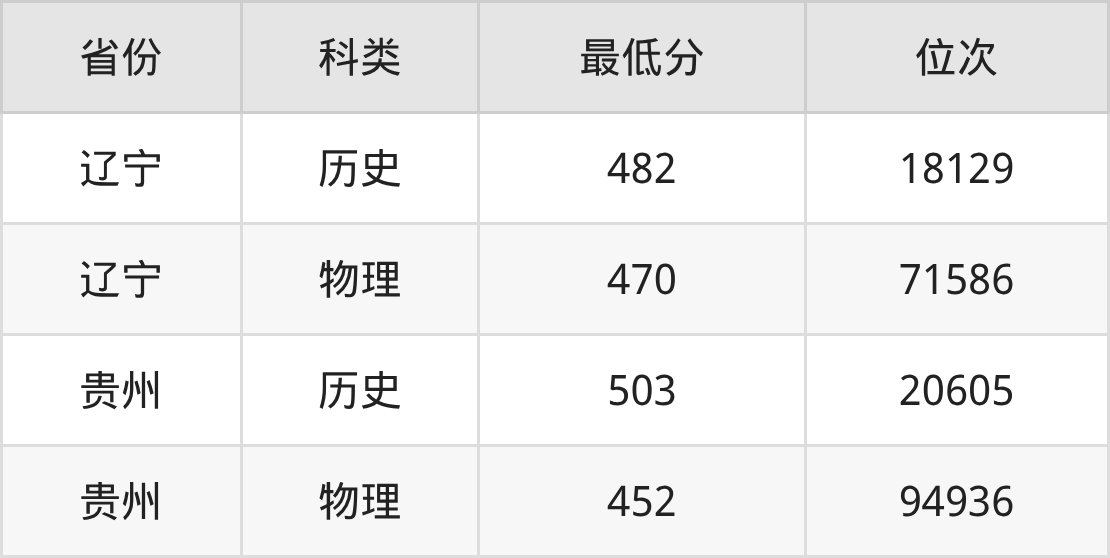2025年鞍山师范学院健康服务与管理专业在贵州录取最低分:历史组是503分,对应位次排名是20605名;物理组是452分,对应位次排名是94936名。