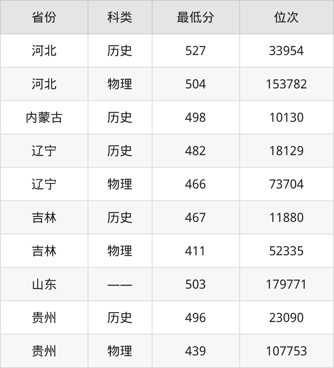 2025年吉林工商学院旅游管理专业在贵州录取最低分:历史组是496分,对应位次排名是23090名;物理组是439分,对应位次排名是107753名。