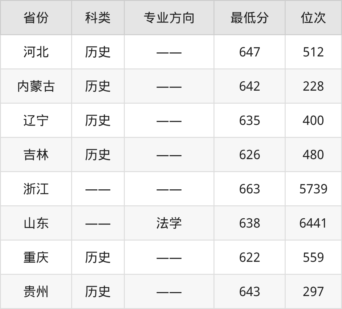 2025年山东大学法学类专业在河北录取最低分:647分,对应位次排名是512名。