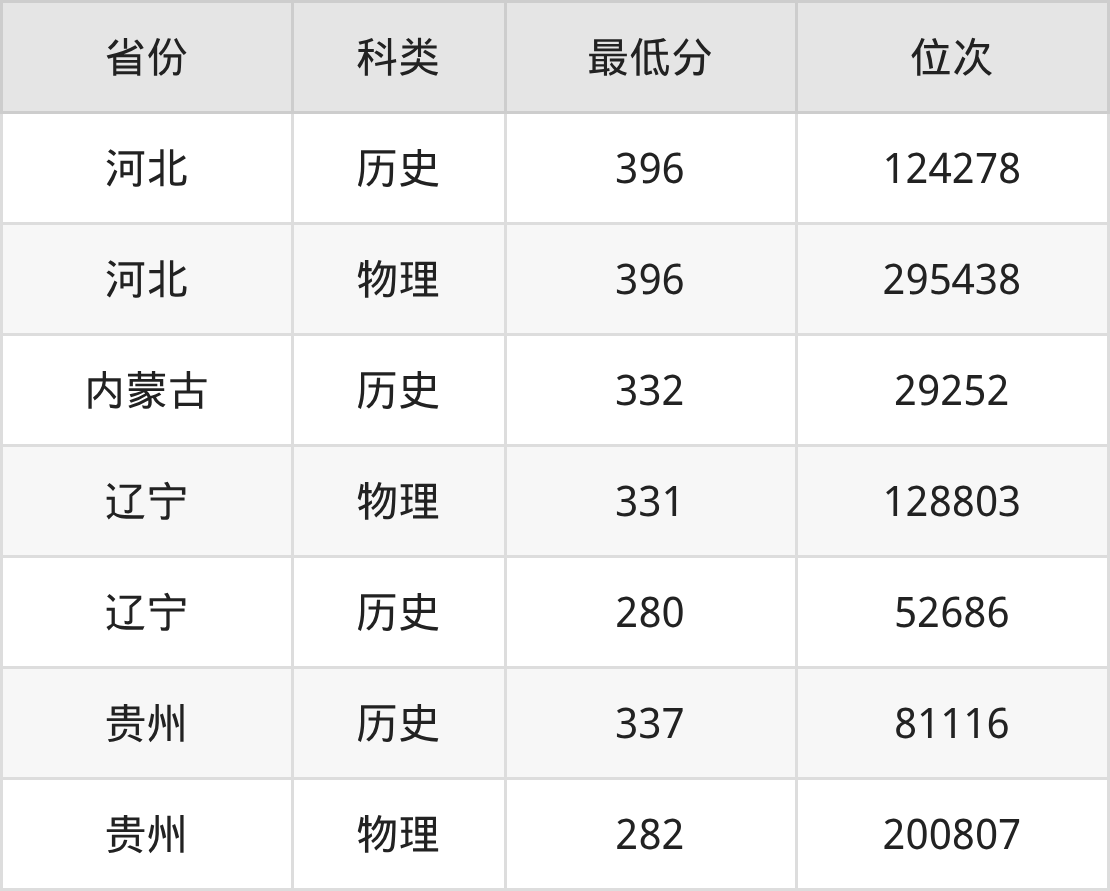 2025年抚顺职业技术学院智能建造技术专业在贵州录取最低分:历史组是337分,对应位次排名是81116名;物理组是282分,对应位次排名是200807名。