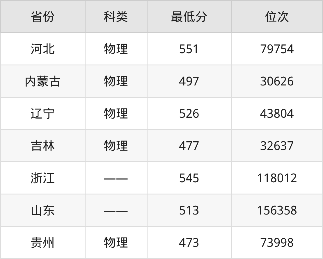 | 省份 | 首选 科目 | 招生名额 |