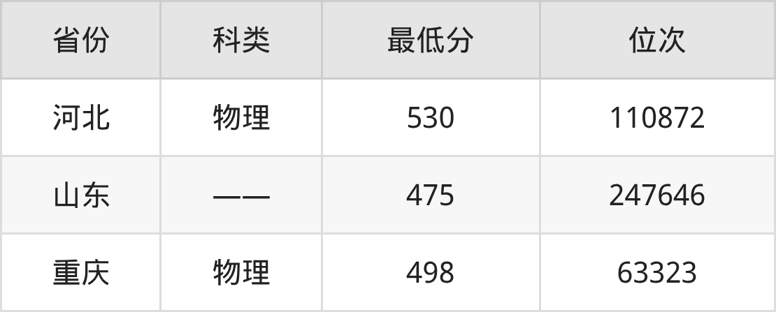| 省份 | 首选 科目 | 招生名额 |