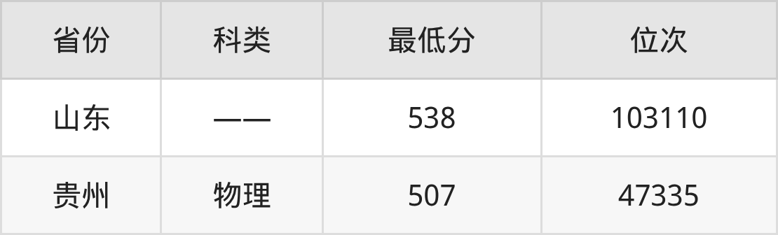 2025年福建医科大学卫生检验与检疫专业在山东录取最低分:538分,对应位次排名是103110名。